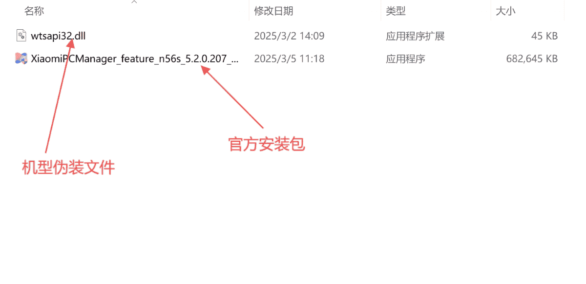 安装后先不要开小米电脑管家(如果自动打开先关闭),右键打开小米电脑管家所在文件夹,把dll机型伪装文件丢进去,然后再打开即可食用。
