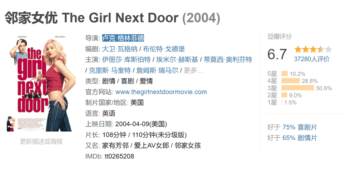 ❤️【D尺度/速存】邻家女 忧 The Girl Next Door 【2004】1080P [中英字幕] [3.2G]