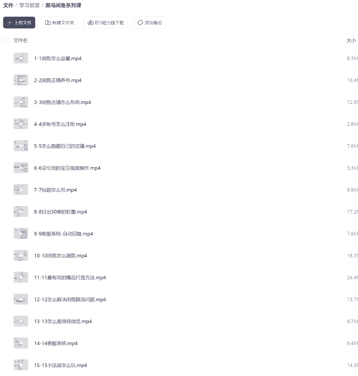 [课程】黑马闲鱼系列课 共20节 227.7m