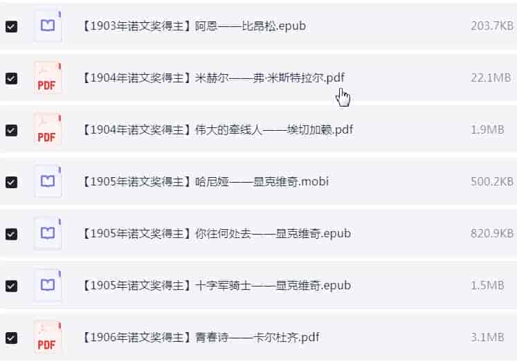 诺贝尔文学奖历届(1901-2024)作品合集 PDF+epub【3.3GB】