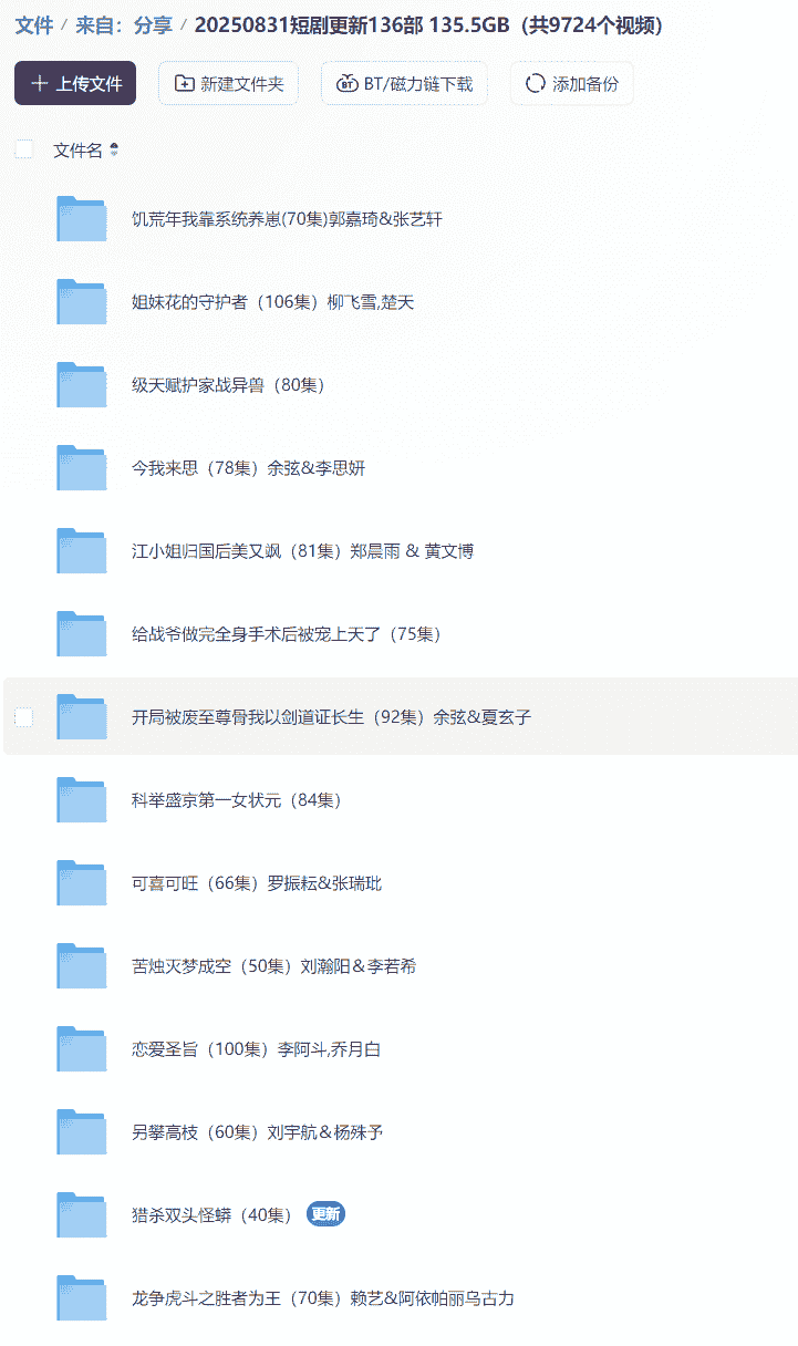 【短剧】20250831短剧更新136部 135.5GB(共9724个视频)