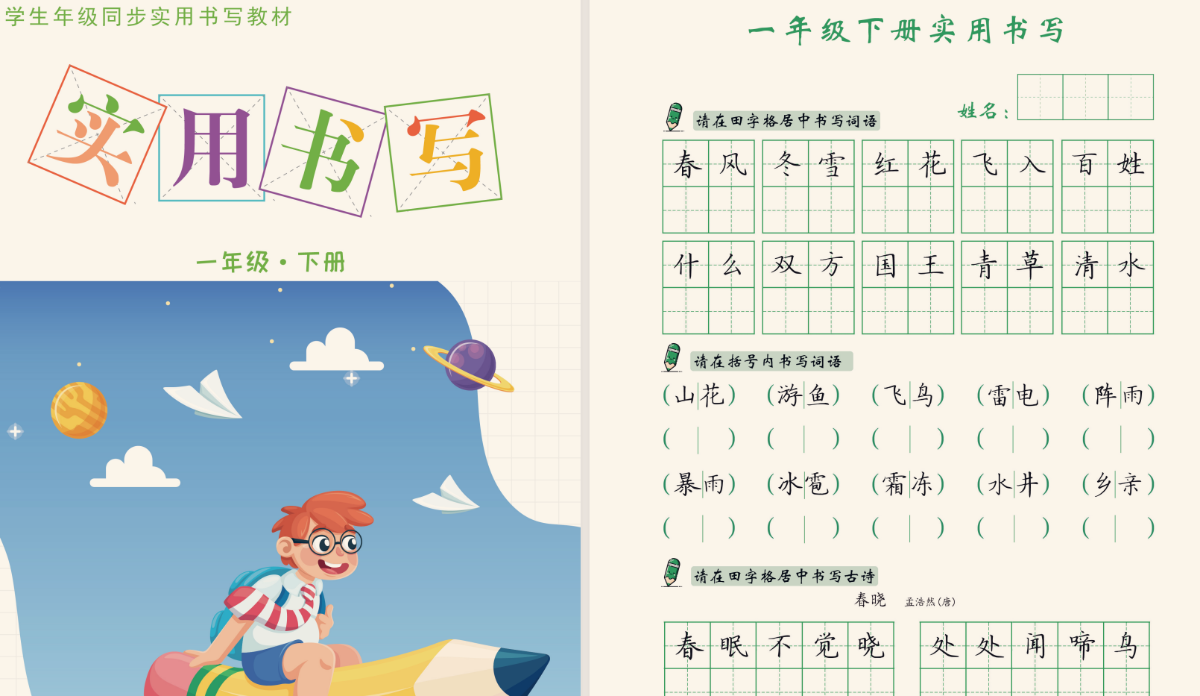 123456年级同步词语古诗实用书写培训机构通用教材练字帖电子版