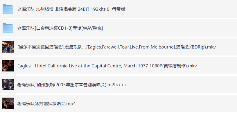 ❤️【绝版珍藏资源】老鹰乐队演唱会+专辑合集 【BD1080P多分辨率】[20.7G]